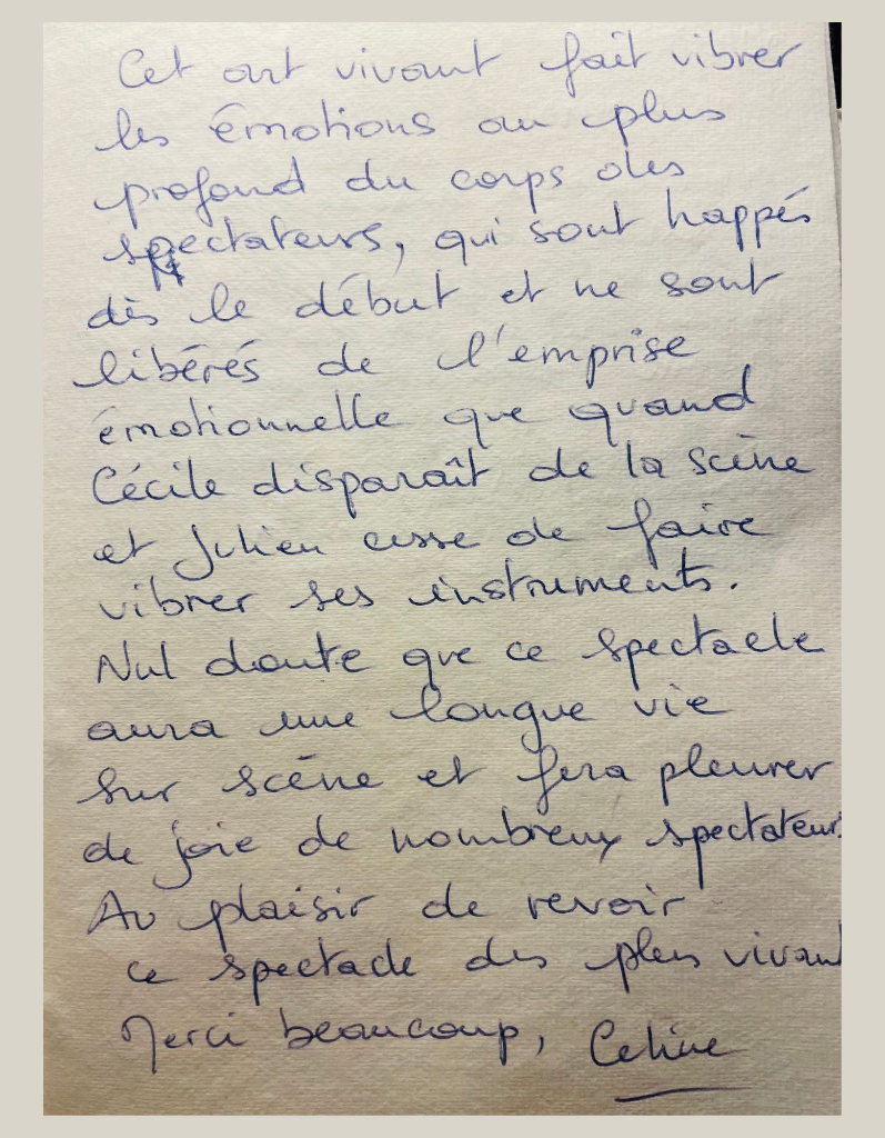 LIVRE D'OR SPECTACLE En un battement de cils 2024-25